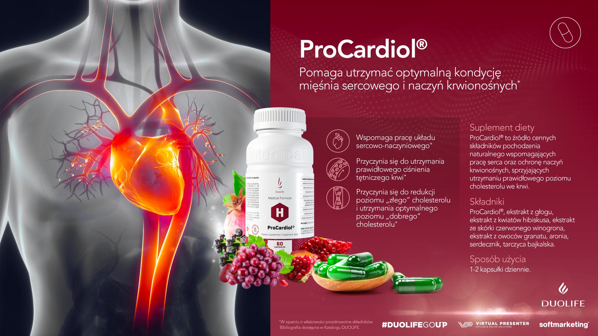 DuoLife ProCardiol jest suplementem diety. Zawiera naturalne ekstrakty roślinne wspierające pracę układu krążenia.